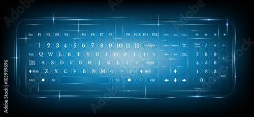virtual shiny computer pc keyboard or keypad on blue background.dialing