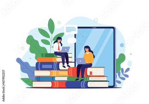 Online education, video conference and distant learning. Online virtual class. Mobile app screens. Vector banner template for website and mobile development. Web site design illustration