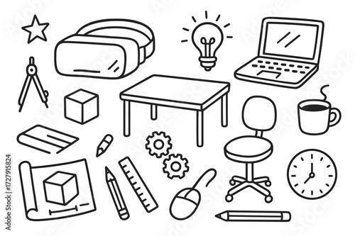 Video game virtual reality icons set. Vr technology offers immersive experiences through headsets, controllers, gloves, and other accessories, transforming how users interact with digital worlds