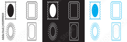 Zig zag Wavy Edge Rectangle, Oval, Circle Stickers Set. Vector Jagged Geometric Shapes. Abstract Elements for Frame, Stamp, Template, Promo Design, Web Design and Social Media