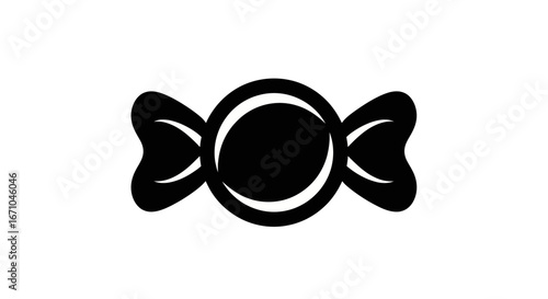 Illustration of a heart shaped candy wrapped with twisted ends in a solid black color on white background on transparent background silhouette