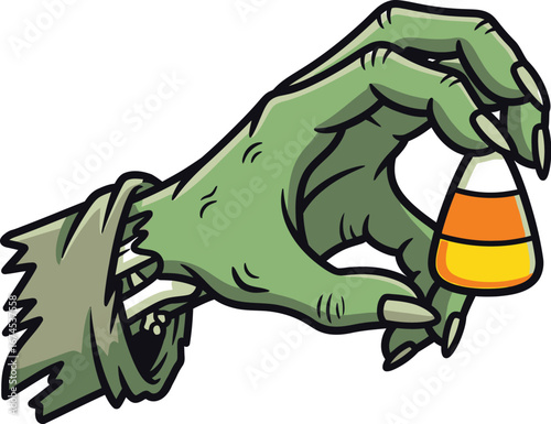 Illustration with creepy zombie finger on white background. Halloween horror party art design. Vector cartoon art.