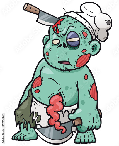 A hungry, spooky, cartoon zombie lurking and decaying.