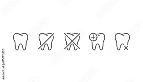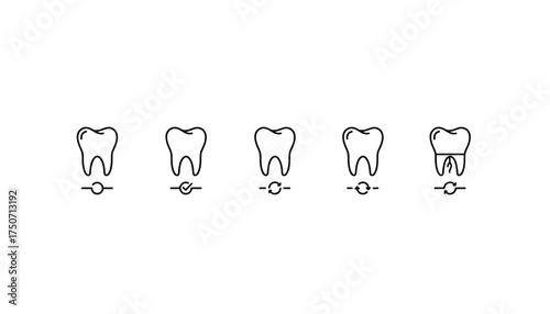 A collection of outlined illustrations depicting various dental procedures and tooth conditions.