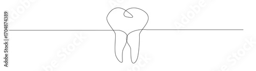 Continuous line drawing of a cracked tooth with a heartbeat line.