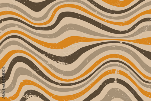 Vintage abstract background of 1970s hippie retro style in rainbow groovy wavy simple line design. 70s classic illustration suitable for poster, banner, textile, cloth, decorative wall art.
