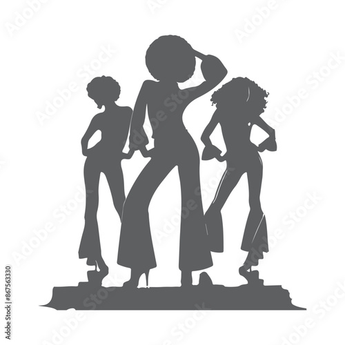 Silhouettes of dancing women in retro style, 70s disco, party, vintage, club, vector illustration