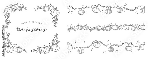 Cute hand drawn Thanksgiving frames and corners, doodle Pumpkins and decoration, great for banners, wallpapers, flyers - vector design