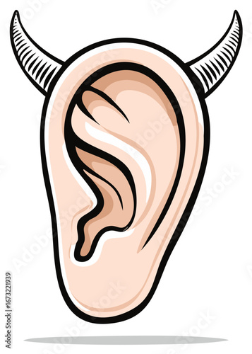 Curious woman listening with hand at ear, overhearing diolog of people. Person eavesdropping secret conversation, dialog of couple. Flat graphic vector illustration isolated on white background