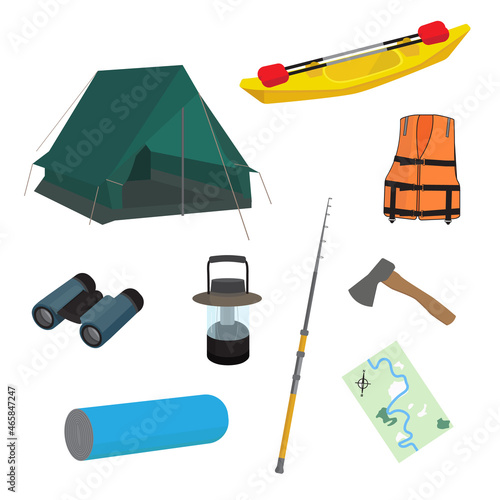 Portable tote bag and bucket hat. Travel-themed vector illustration elements