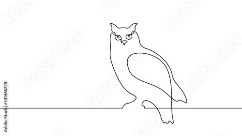 Continuous line owl. One line drawing owl night animal single line vector illustration