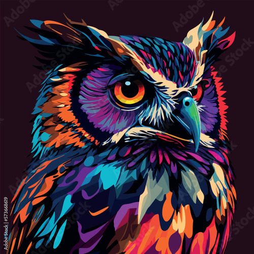 Cartoon vector rainbow owl isolated on white background. Bright colorful illustration.