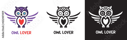 Cute owl logo vector, simple Owl logo design, pet shop logo template editable, logotype, black and white variations, owl lovers logo design