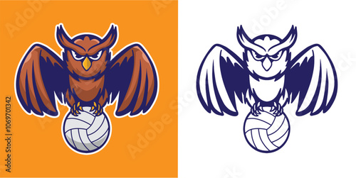 mascot owl with volleyball good for sticker,  mascot logo, team logo, sport logo, etc