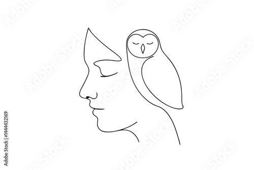 Womans profile and owl continuous line art minimalist design simple elegant illustration
