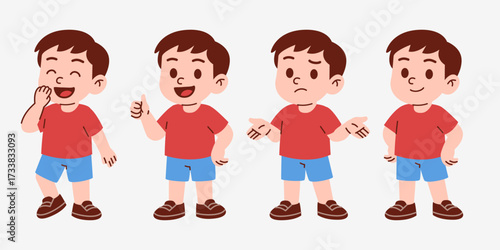 Young man doing thumbs up. Man asking silence. Businessman thinks, massaging his neck. Hand drawn vector illustration.