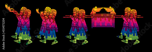 Priests carry the ark. Vector drawing