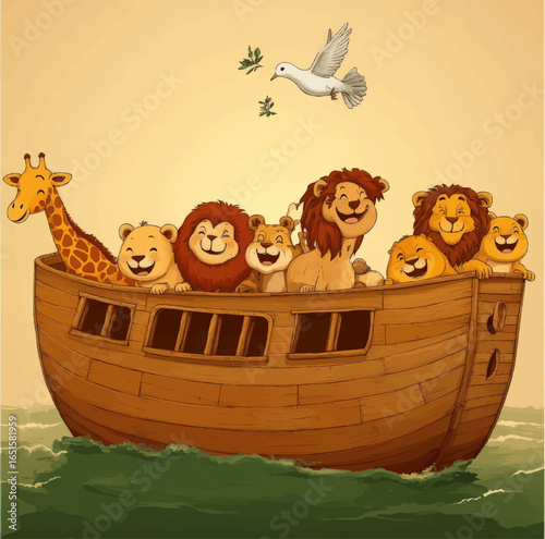 nuh noah ark ship cartoon illustration poster template