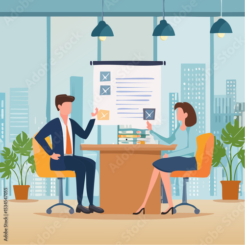 Job interview. Business office meeting hr managers directors chief vector concept characters. Illustration of job interview meeting office, hr manager