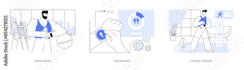 Office Hydration Icons. Outline icon set of office hydration break: water bottle, glass of water, water cooler, refill station,