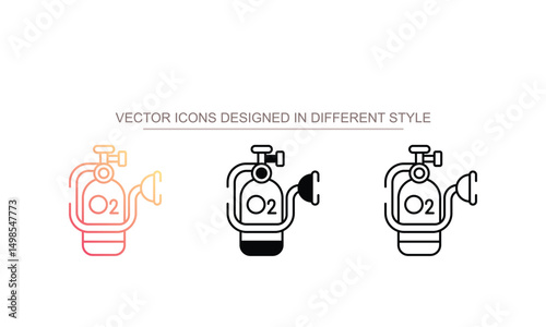 Collection of colorful diving equipment icons and accessories for underwater exploration and adventure
