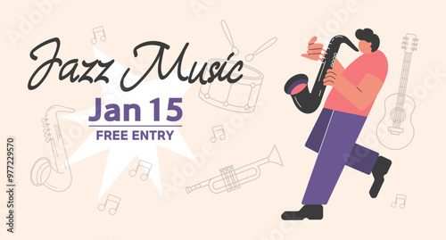 jazz saxophone player drawing poster. jazz is saxy