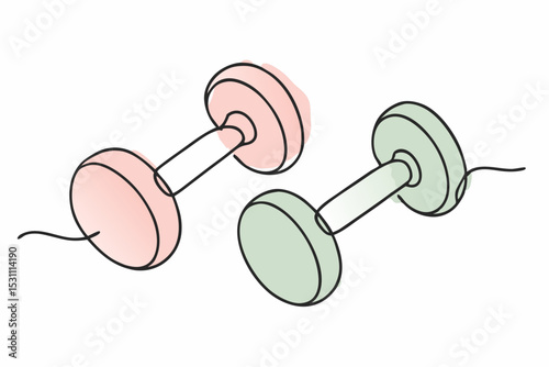 Pair of stylized fitness dumbbells for exercise and workout, representing strength training and healthy lifestyle