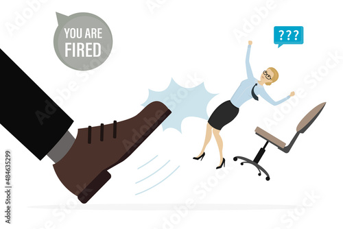 Boss kick fired employee away form office. concept of lay off or underperform, failure or mistake