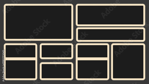 Frame collage set. Place for pictures and images. Scrapbooking and photo album with family memories. Digital frame gallery. Cartoon flat vector collection isolated on beige background