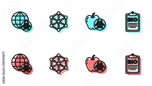 Set line Genetically modified apple, GMO, and Document for bio healthy food icon. Vector.