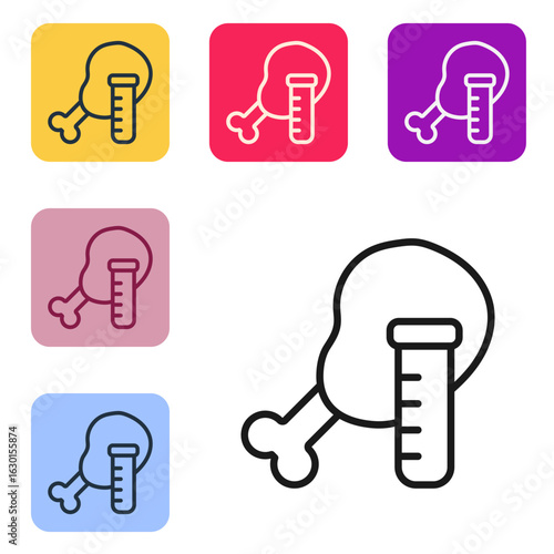 Black line Genetically modified chicken icon isolated on white background. Syringe being injected to chicken. Set icons in color square buttons. Vector