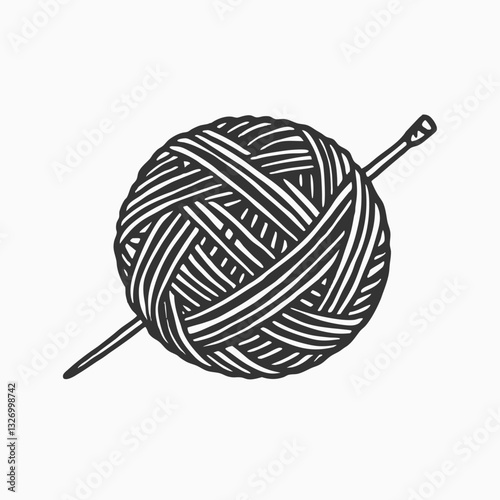 Yarn ball with knitting needles silhouette on white background graphic resource