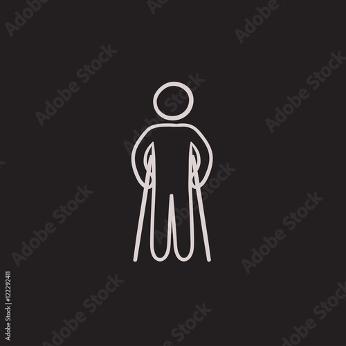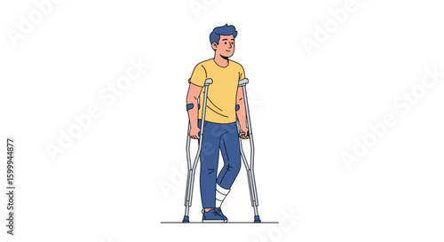 Person with broken leg and crutches icon for medical injury and recovery concept