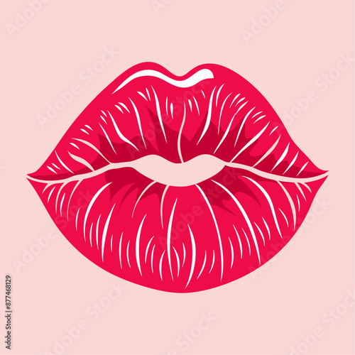 Red lips icon. Woman lipstick mark. Kiss symbol