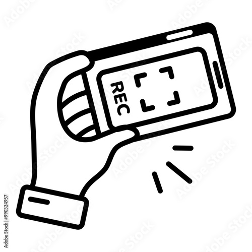 QR code scanning icons set. Hand holding Mobile phone symbol. Simple line icon style, barcode scanner for pay, web, mobile app signs. Digital barcode, website, link, quick, modern vector illustration