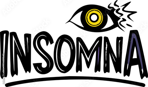 Insomnia symptoms Vector. Cartoon. Isolated art on white background. Flat