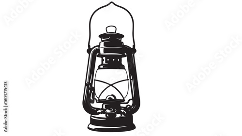 Retro camping lantern flat, lamp symbol, vector silhouette