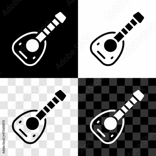 Set Musical instrument lute icon isolated on black and white background. Arabic, Oriental, Greek music instrument. Vector