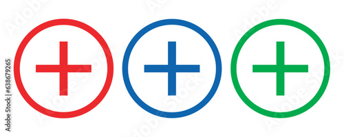 Set red cross first aid flat color different shapes sign medicine symbol hospital icons white. Emergency medic red white collection plus logo design for web mobile isolated on background