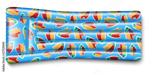 Summer vacation poster. Color inflatable mattresses floating in the water. Top view. Vector illustration