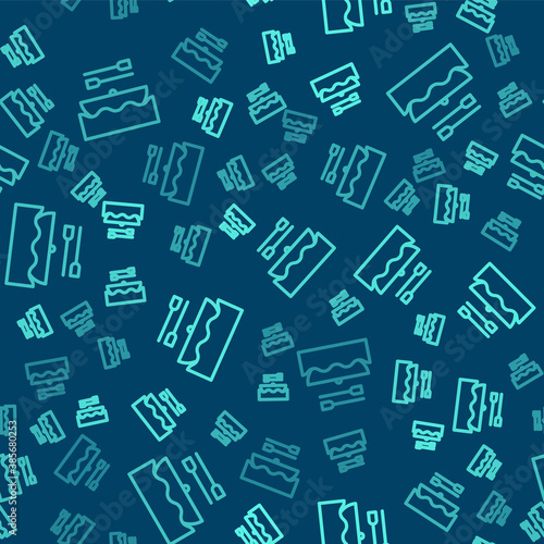 Black line Rafting boat icon isolated seamless pattern on green background. Inflatable boat with paddles. Water sports, extreme sports, holiday, vacation. Vector
