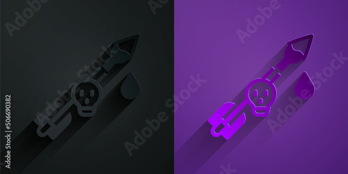 Glowing neon line Poison on the arrow icon isolated on black background. Poisoned arrow. Vector
