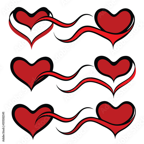 Modern minimalist single line drawing of romantic heart icons