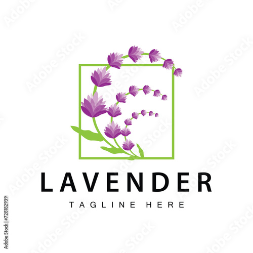 Lavender logo simple design vector cosmetic plant purple color and aromatherapy lavender flower garden template