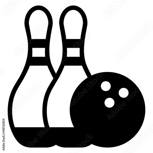 Bowling Pin and Ball Solid Vector Icon - Editable Stroke Sport Symbol