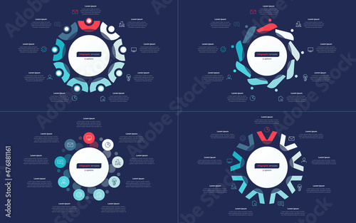infographic template with integrated circles. Business concept with 8 options. For content, diagram, flowchart, steps, parts, timeline infographics, workflow, chart.