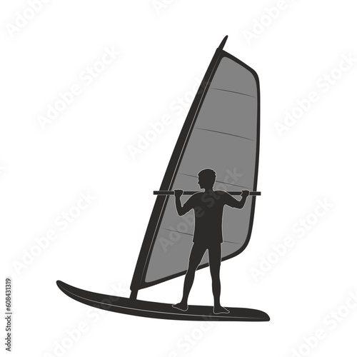 Dynamic vector silhouette of a person windsurfing on water during a sunny day ocean sport activity and recreation