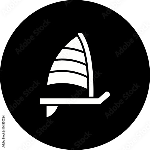 Windsurfing Icon: Capturing the essence of windsurfing with dynamic illustration of the sail and board, evoking the excitement and freedom of gliding across the water.