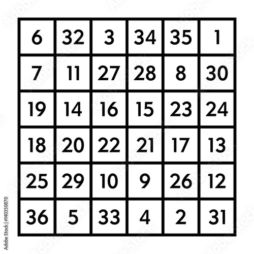 Order seven magic square, a symbol assigned to the astrological planet Venus, with the magic constant 175. Magic square with the numbers 1 to 49. The sum of the numbers in any direction is always 175.