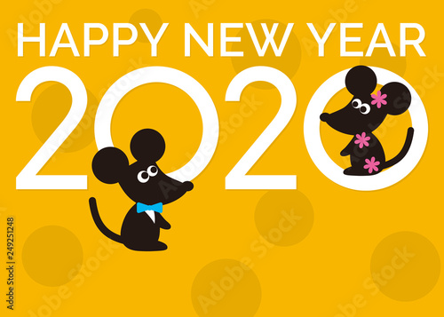 Happy new year 2020 - Year of the Rat. Blossom flower background. Translation Mouse